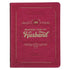 Heat-debossed frame design, Raspberry-red faux leather, Gold foil accents, Gold-foiled title, Two-color interior, Gilt-edged pages, 416 pages, 199 devotions, Attached ribbon page marker, Presentation page, Size: 7.8" x 6" x 1" (198 x 152 x 25mm)