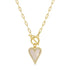 This necklace is filled with a precious mother of pearl heart and surrounded by a sparkling pave border, all connected by a delicate paperclip chain with an easy-to-use toggle that clasps in front.